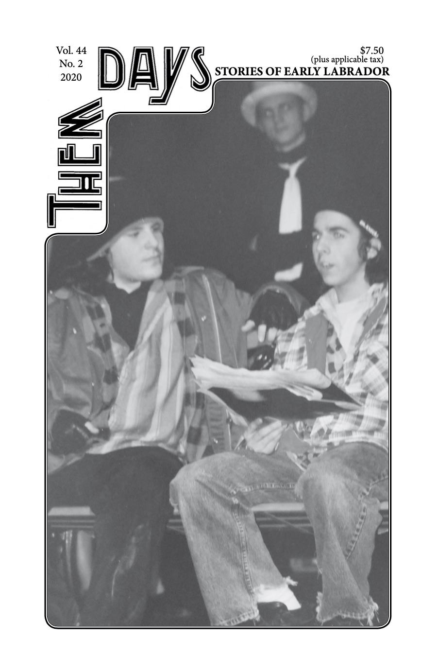 Front Cover: From a performance by the Ike Rich Players of Goose High School at the 2002 Labrador Creative Arts Festival. The play, Corner of Jarvis & Queen, layers themes from Greek mythology on urban life in modern Toronto. In the foreground, Jamie Jackman and Matthew Barrett play street people Gabe and John, while Andrew Crawford behind them plays Hope, and Noelle (Fry) Ryan is just out of sight on the edge of the frame, playing Pandora.
