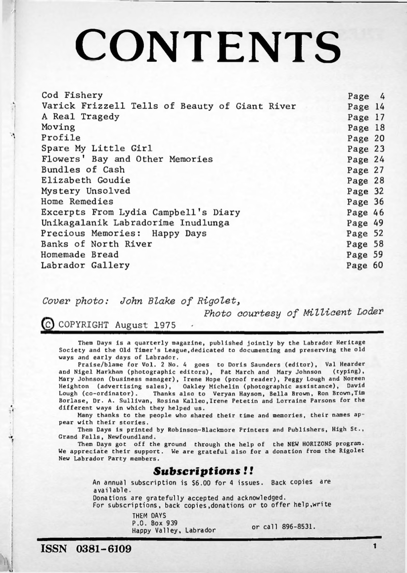 Everybody was looking for fresh cod when hundreds of schooners come up from Newfoundland, they’d say they’d be out for ours at a time settin’ nets and pullin’ up what they had once before and it was how they used to always do it and it always worked. Reminisce with memories of Flowers’ Bay with one story from a woman who grew up on said land. Read about an unsolved mystery that happened just in Happy Valley all in this issue of Them Days.