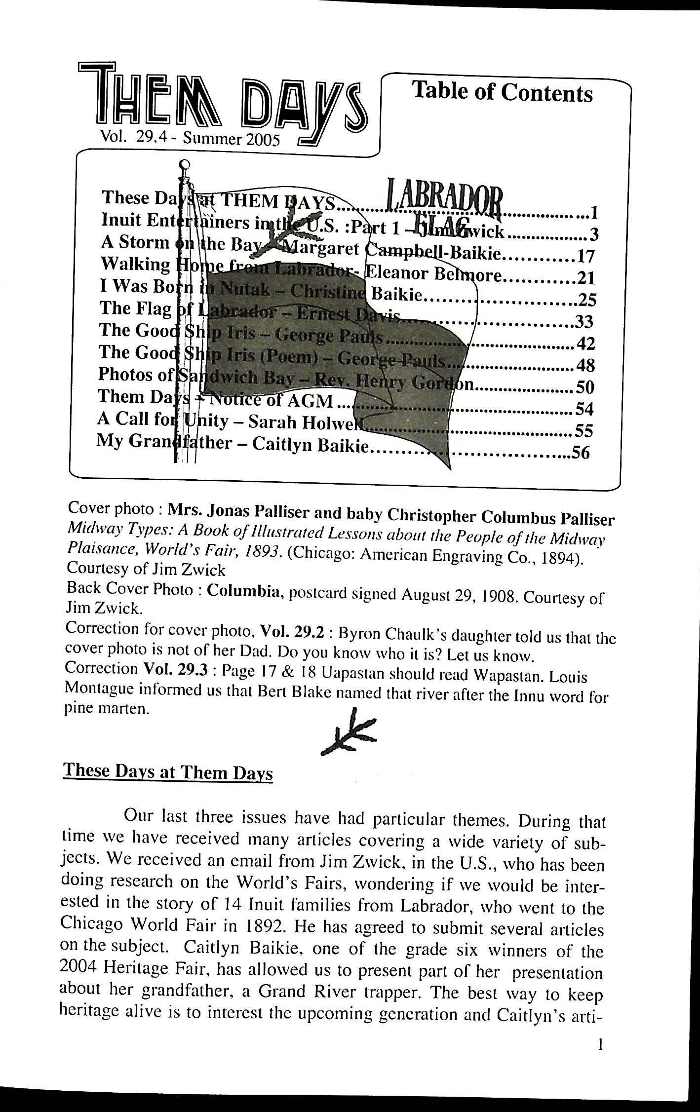 Jim Zwick has agreed to submit several articles on the subject his doing. Evelena sailed to Boston. Margaret Baikie wrote an account of her life in Esquimaux Bay. Eleanor Taylor Belmore’s dad was Corey Taylor. Christine (Lyall) Baikie was born in Nutak. The Labrador Flag has white, green and blue with a spruce twig in the upper left corner. During Christmas people arrived Hopedale for the Advent Christmas festival. The Good Ship Iris is a poem by George Pauls. Rev. Henry Gordon and Clara took some pictures in Sandwich Bay Mission from 1915-1925. We are at cross-road and need input from our readers to help us set a course for the future. A Call of Unity is a poem by Sarah Howell. Caitlyn Baikie is from Nain, Labrador.