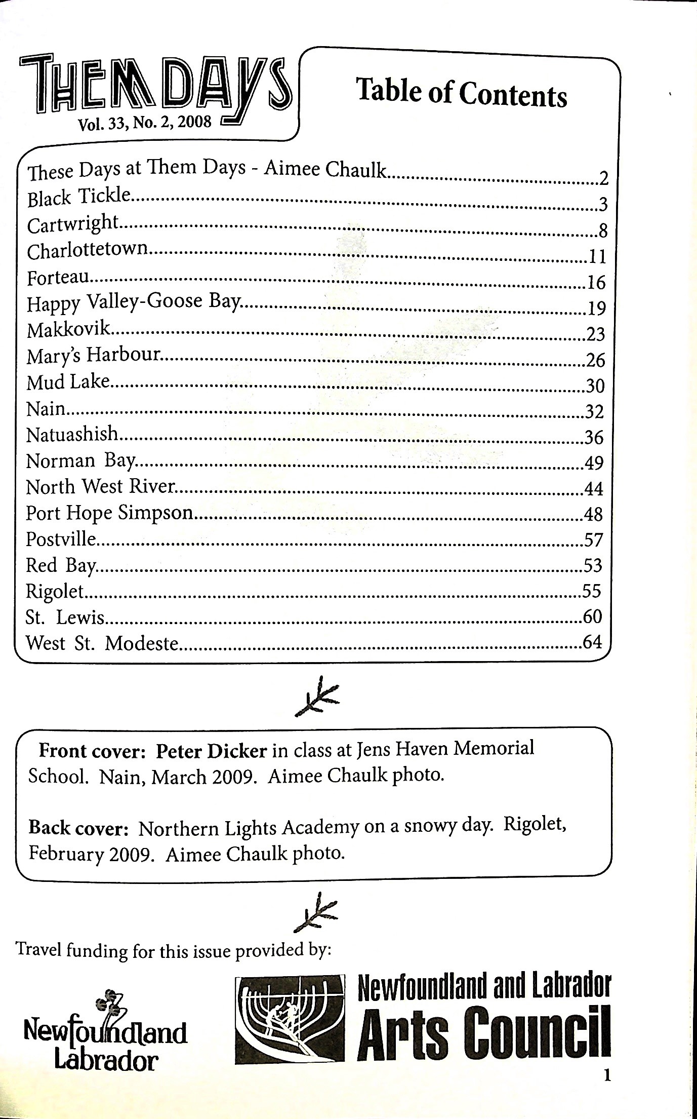 Front cover: Peter Dicker in class at Jens Haven Memorial School. Nain, March 2009. Aimee Chaulk photo.