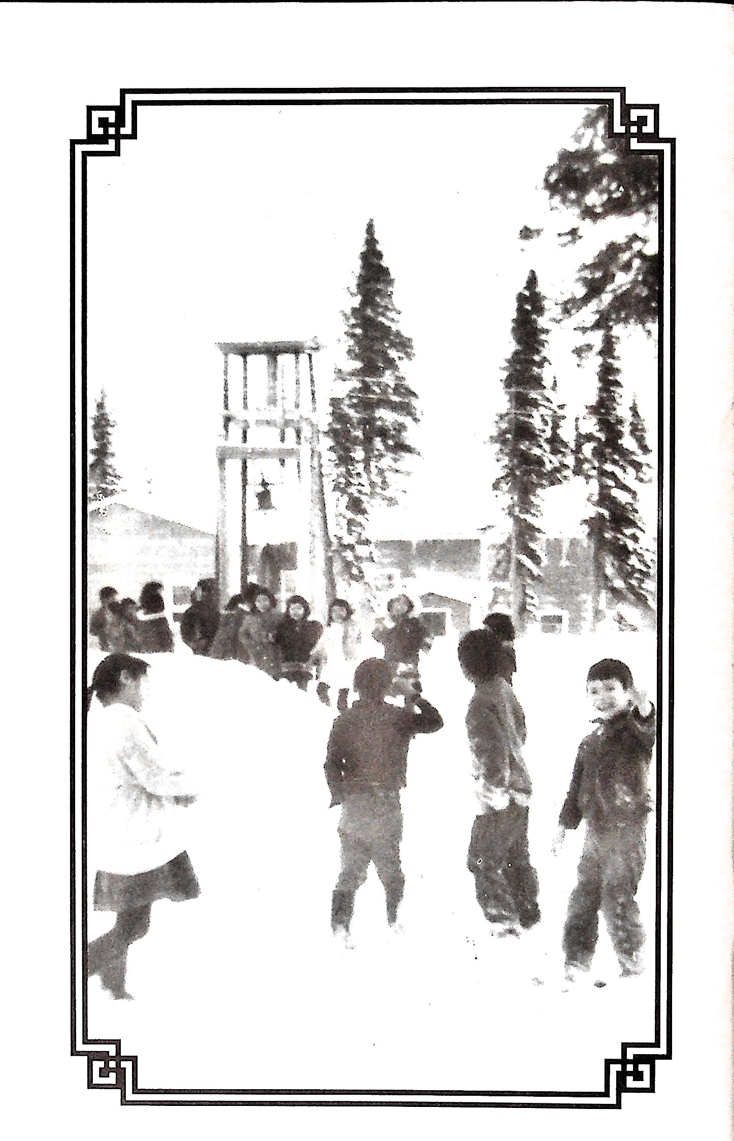 Back cover: Albert Rich and other students walking toward the