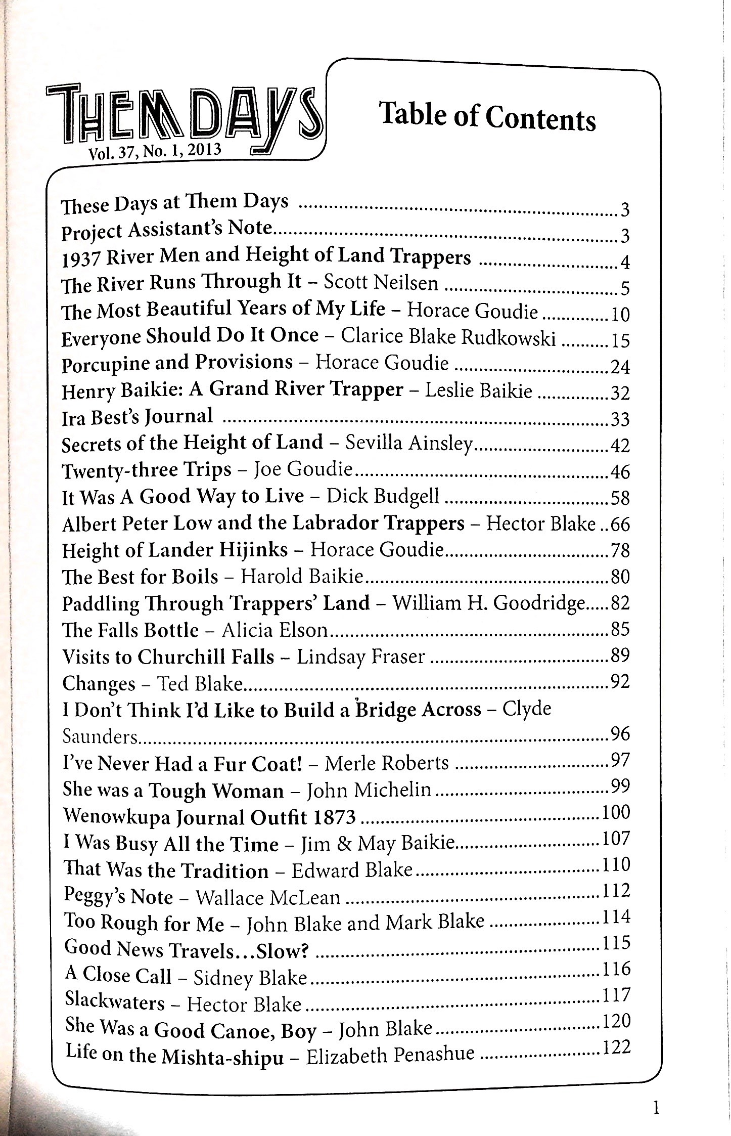 Front cover: John Blake standing. Muskrat Falls. John Blake collection