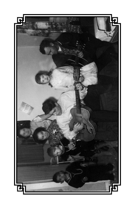 Back cover: A cozy Christmas. John O. Heard and George Crawford on guitar, Rhoda Heard sitting on the edge of the chesterfield, Barbara “Hoody” Crawford standing, and children from left to right: Johnny Heard, Marshall Heard, and Joan Crawford. Happy Valley, mid-1960s. Courtesy of John O. Heard
