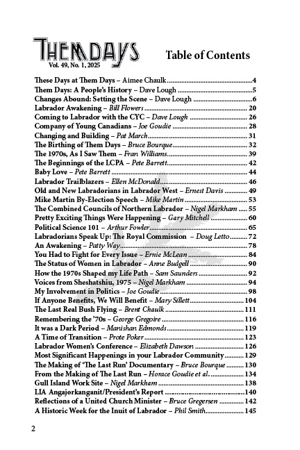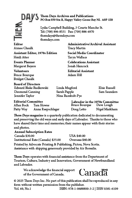 The biggest issue ever produced by Them Days (256 pages–a year’s worth of stories in one issue!), Labrador in the 1970s is dedicated to the decade that saw great change in Labrador, and the birth of many movements that still impact us today–like Them Days magazine itself!
