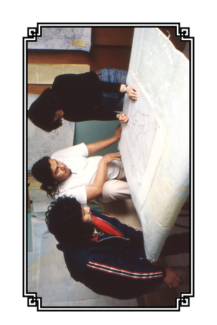 Back cover: Alex Andrew, Bart Jack, Brenda Sakuye. Innu Land Claims Office, 1975. Nigel Markham photo