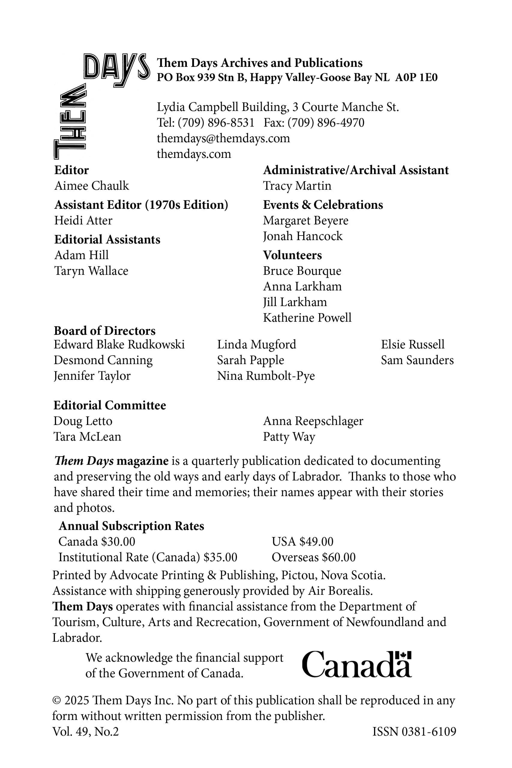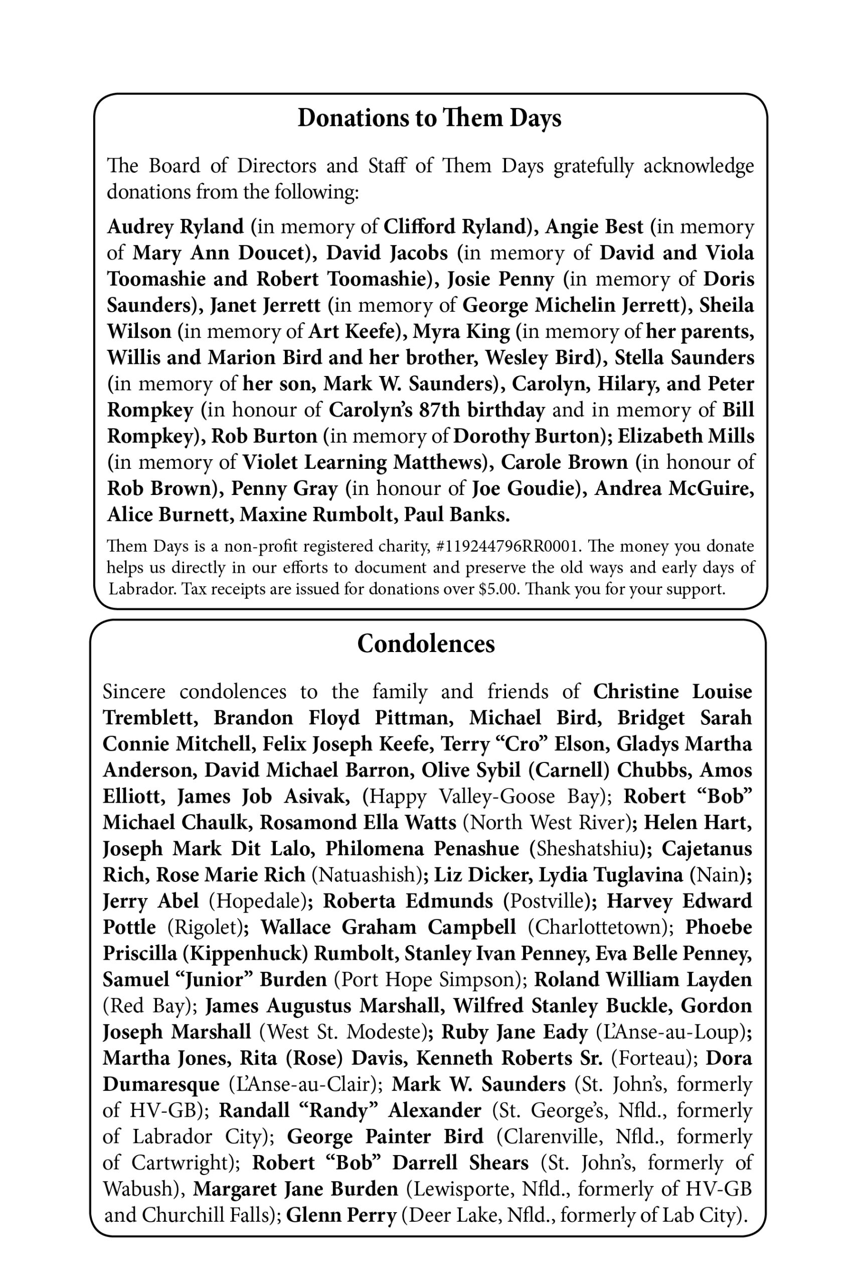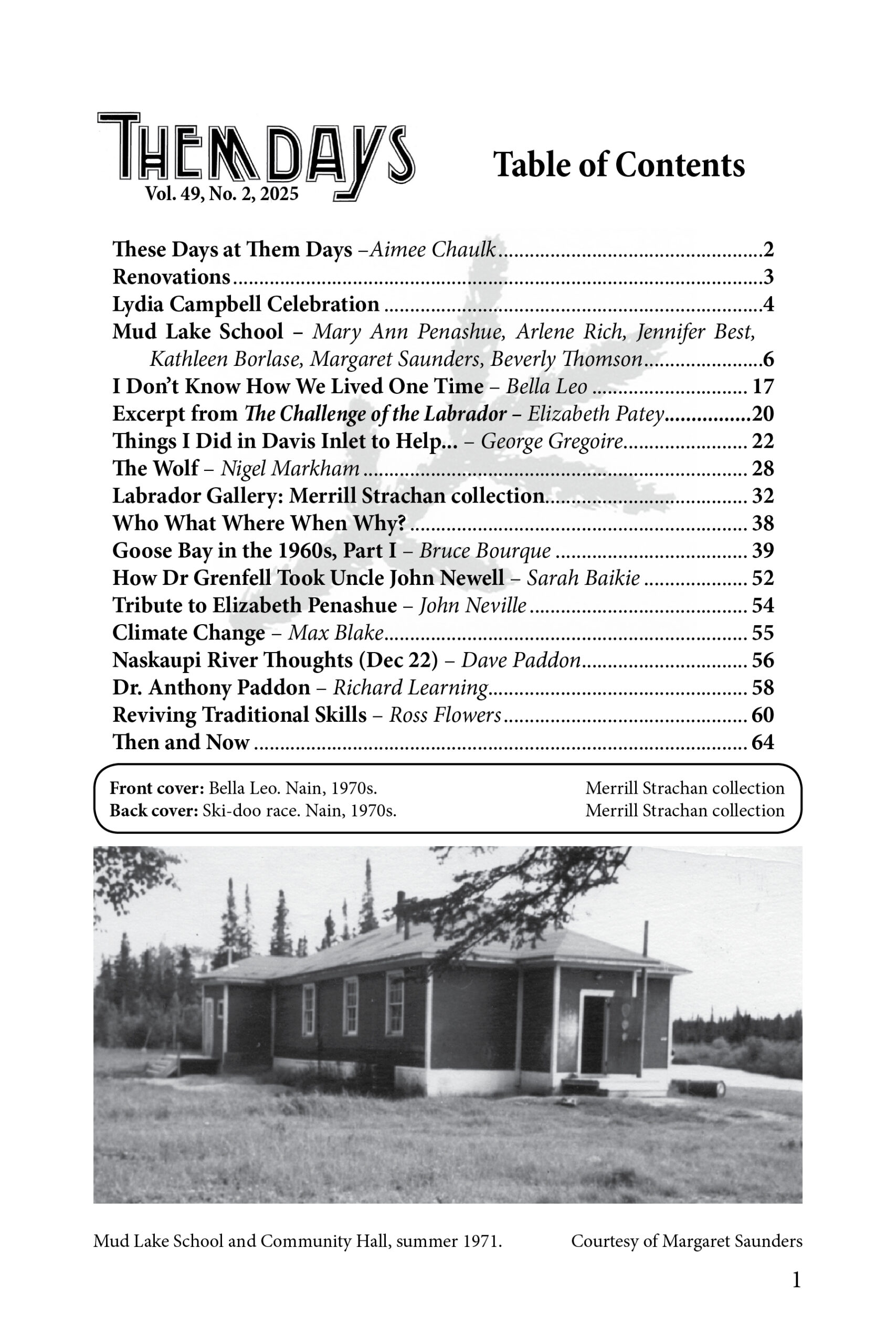 A tribute to the Mud Lake School, which closed after operating for 100 years, stories about Davis Inlet, Goose Bay in the 1960s, traditional skills, and more!
